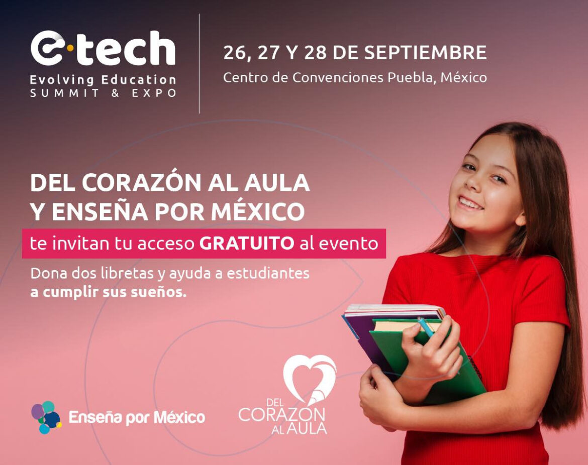 Con el objetivo de reducir la inequidad educativa para que niñas, niños y jóvenes con recursos limitados alcancen su máximo potencial a lo largo de su vida estudiantil, E-Tech Evolving Education, el evento que reúne a líderes y actores de la industria EdTech, anuncia la segunda edición de la campaña Del Corazón al Aula, la cual cuenta con el apoyo de Enseña por México.