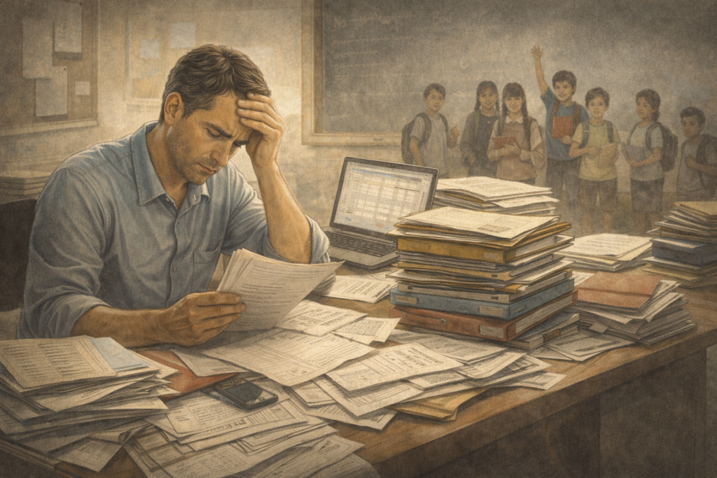 Para los autores de la sobrecarga administrativa y burocrática no pedimos mucho, solo que sean un poco empáticos y se preocupen sinceramente por la educación, pues tanta distracción a la que conducen a las y los docentes con infinidad de trámites deriva en que las y los estudiantes no logren los aprendizajes esperados. Se sobreentiende que el tiempo efectivo de clases se reduce por lo menos a la mitad de la jornada. Pero no en pocas ocasiones, para poder cumplir con su función esencial, tienen que llevar el trabajo administrativo a su casa, restando, de esta manera, tiempo para atender asuntos personales o familiares, o bien, a la necesaria planeación de sus clases.