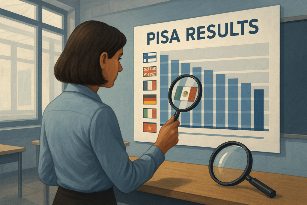 PISA es un proyecto de la Organización para la Cooperación y Desarrollo Económico que inició en el año 2000. Evalúa las competencias de pensamiento matemático, comprensión lectora y ciencias que logran los estudiantes de 15 años, independientemente del grado escolar que cursen (1º de bachillerato o 3º de secundaria). Su propósito es identificar con precisión la capacidad de los estudiantes de aplicar los conocimientos y habilidades adquiridos. Dado que PISA se repite cada tres años, los resultados de un país se pueden comparar longitudinalmente, con lo que se puede conocer su progreso educativo. Los resultados de los países se pueden comparar entre sí, ya sea en un momento dado o a lo largo del tiempo. Durante dos décadas México mantuvo más o menos los mismos resultados magros, con excepción de 2022 (en tiempos de AMLO) cuyos resultados bajaron en los tres dominios curriculares. En matemáticas 2 de 3 estudiantes no dominan las habilidades básicas y 1 de 2 no comprende lo que lee y no puede resolver problemas utilizando el método científico.