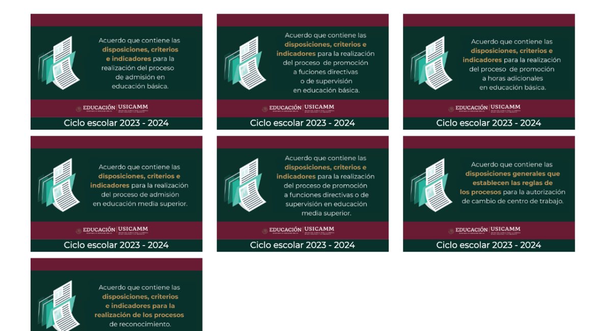 La Unidad del Sistema para la Carrera de las Maestras y los Maestros (USICAMM) ha publicado las disposiciones, criterios e indicadores de los procesos de admisión, promoción y reconocimiento, de educación básica y Media Superior para el ciclo escolar 2023-2024.